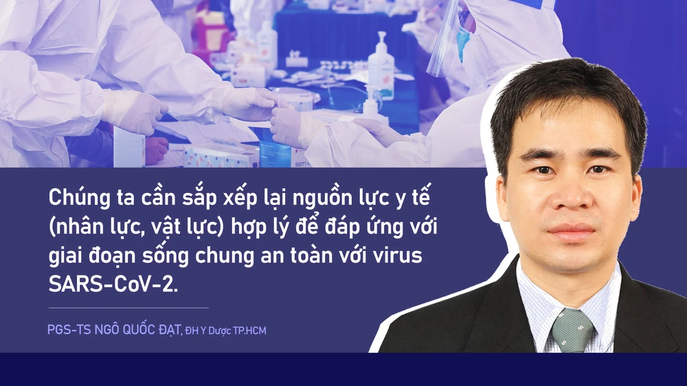 Hệ thống chăm sóc sức khỏe của TP sẽ thay đổi thế nào để đảm bảo mục tiêu sống chung an toàn với virus SARS-CoV-2 sau khi TP mở cửa trở lại, giảm bớt các cơ sở dã chiến? Theo PGS-TS Ngô Quốc Đạt, Phó Trưởng Khoa y ĐH Y Dược TP.HCM, TP cần vận hành một mô hình y tế gồm ba trụ cột quan trọng: Y tế cơ sở, y tế tư nhân và tuyến y tế dự phòng tăng cường.