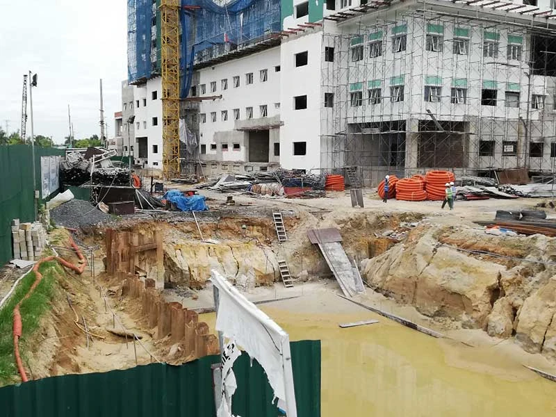 Một góc công trình BV Hữu nghị đa khoa tỉnh Nghệ An giai đoạn 2 xây lên đất đường Hồ Tông Thốc. Ảnh: ĐẮC LAM
