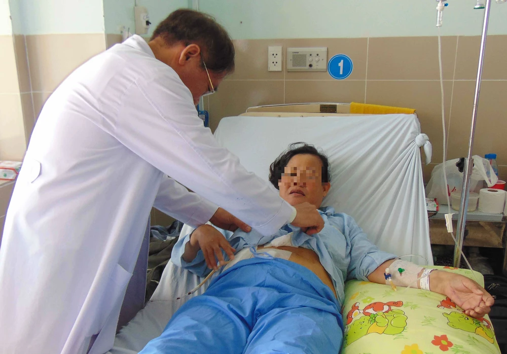 Trước đó, bà T được đưa vào BV quận 11 trong tình trạng đau dữ dội vùng trên rốn. Kết quả chẩn đoán xác định bà T bị sỏi túi mật nên các BS quyết định mổ.