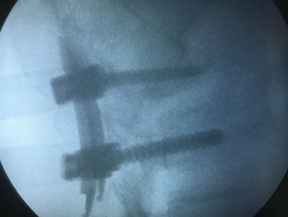 Ảnh chụp máy C-arm cho thấy vít được đưa vào cơ thể bà Đ. Ảnh: LÊ PHỤNG
