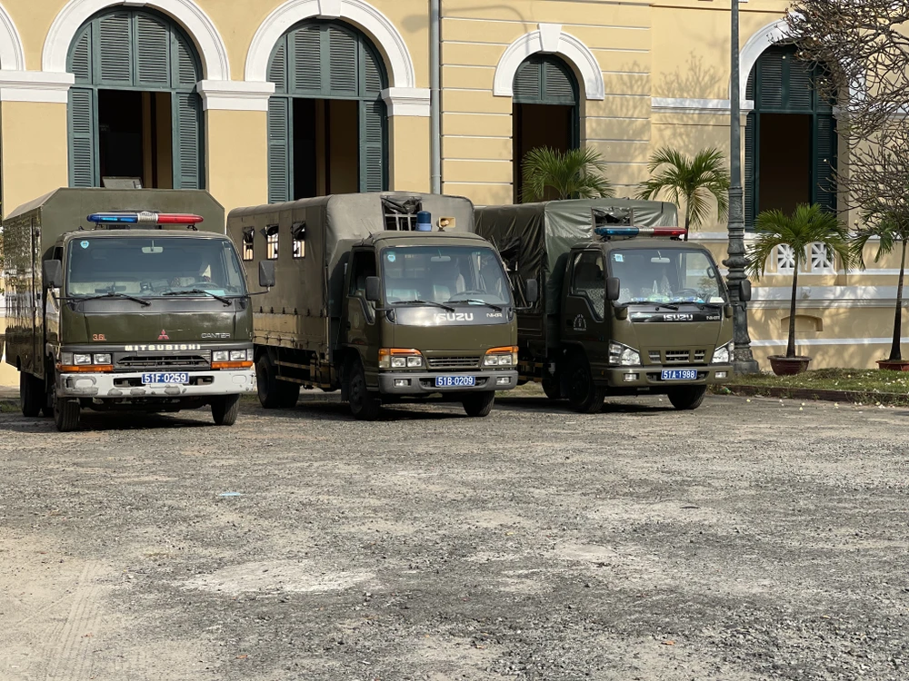 Từ sớm, xe trại tạm giam đã chở các bị cáo đến toà. Ảnh: HY