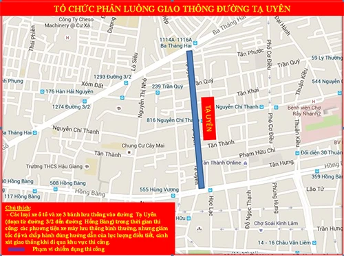 1. Đường Tạ Uyên đã được đào tại đoạn từ đường Ba Tháng Hai đến Trần Quý nay sẽ đào tiếp đến giáp đường Hồng Bàng (vị trí đào và lộ trình thay thế theo màu trên bản đồ dưới).