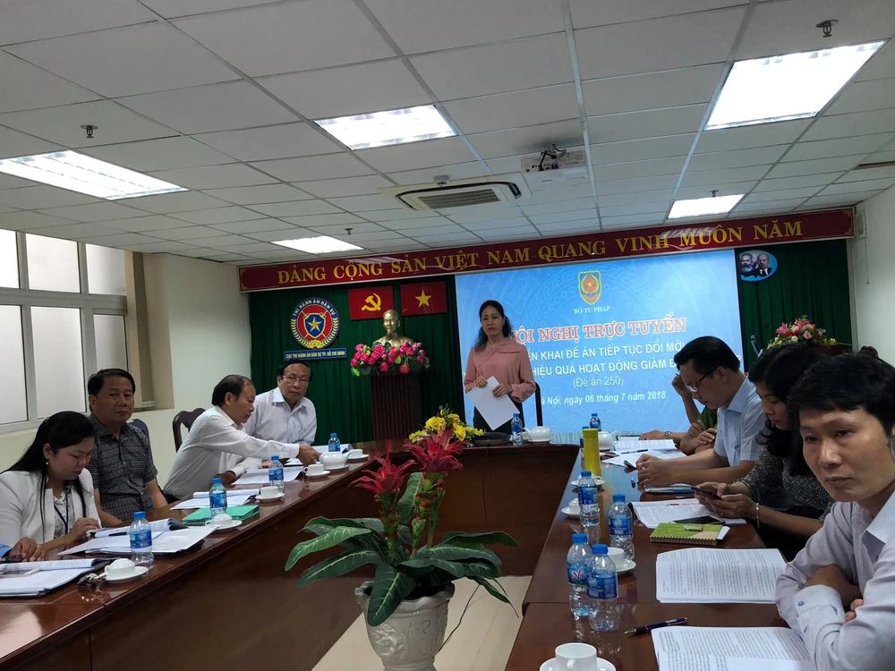 Bà Phan Thị Bình Thuận, Phó Giám đốc Sở Tư pháp TP.HCM, phát biểu tại hội nghị. Ảnh: K.P