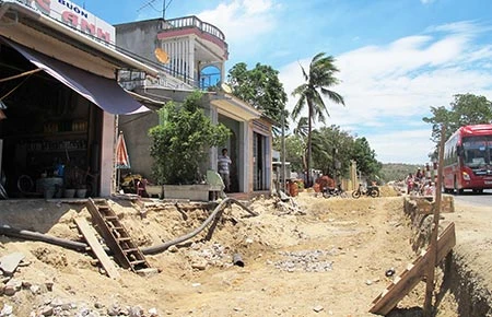 Quốc lộ 1 đoạn qua thị xã Sông Cầu, Phú Yên đang được mở rộng. Theo người dân, nhà thầu thi công rất chậm trễ, ảnh hưởng tới sinh hoạt của các gia đình hai bên đường. Ảnh: TẤN LỘC