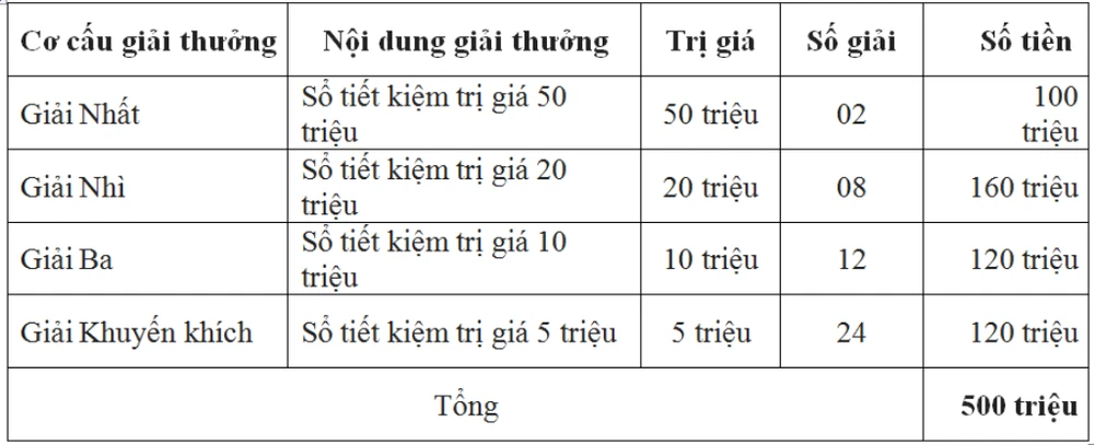 Thời gian quay số dự kiến: 18-8. Cơ cấu giải thưởng như sau: