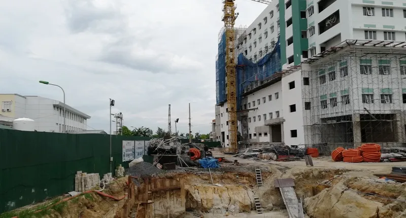 Môt góc công trình BV Hữu nghị Đa khoa Nghệ An thi công nằm lên đường Hồ Thông Tốc.