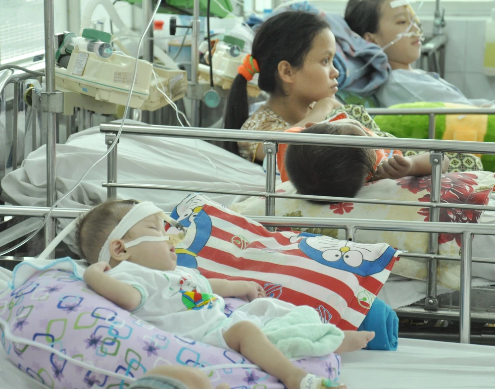 Trẻ vừa được mổ tim xong tại BV Nhi đồng 1. Ảnh: TÙNG SƠN
