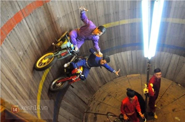 Mô tô bay - Màn xiếc một thời của tuổi thơ. Ảnh: Kênh 14