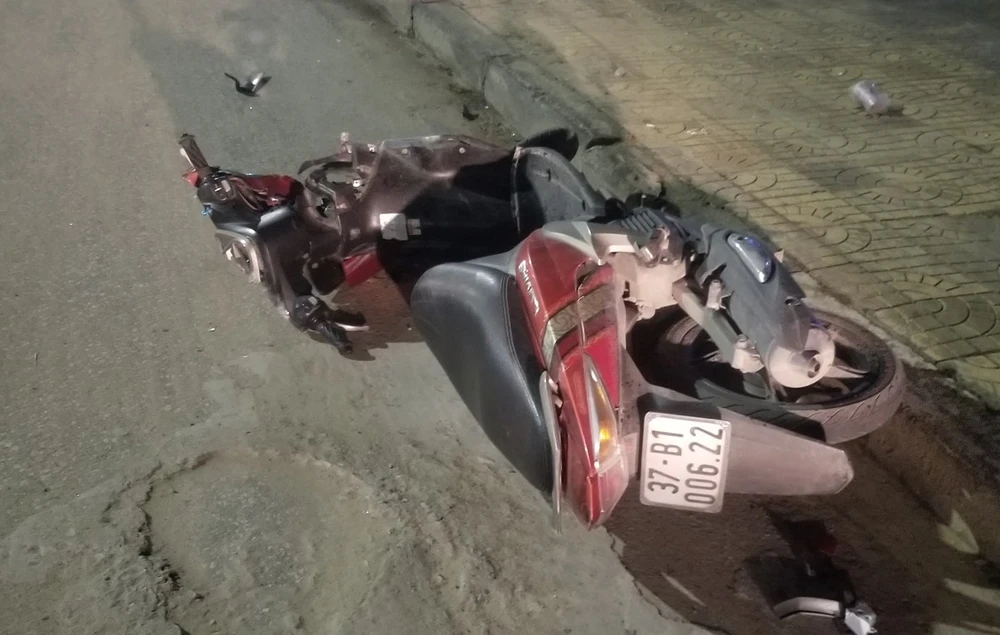 Vào thời điểm nêu trên, mô tô 59A3- 231.93 do một thanh niên điều khiển chở một người ngồi sau chạy tốc độ cao hướng trung tâm TP Vinh-sân bay Vinh va chạm với xe máy 37B1- 006.22 do một phụ nữ điều khiển.