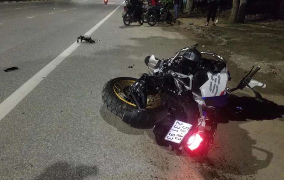 Cú va chạm mạnh khiến mô tô phân khối lớn văng cách xe máy khoảng 100m.