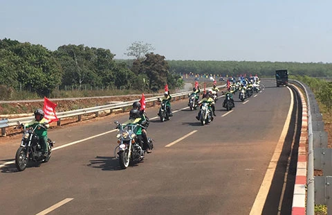 Xe mô tô phân khối lớn diễu hành trên tuyến cao tốc TP.HCM - Long Thành - Dầu Giây trước khi toàn tuyến cao tốc thông xe. Ảnh: MP