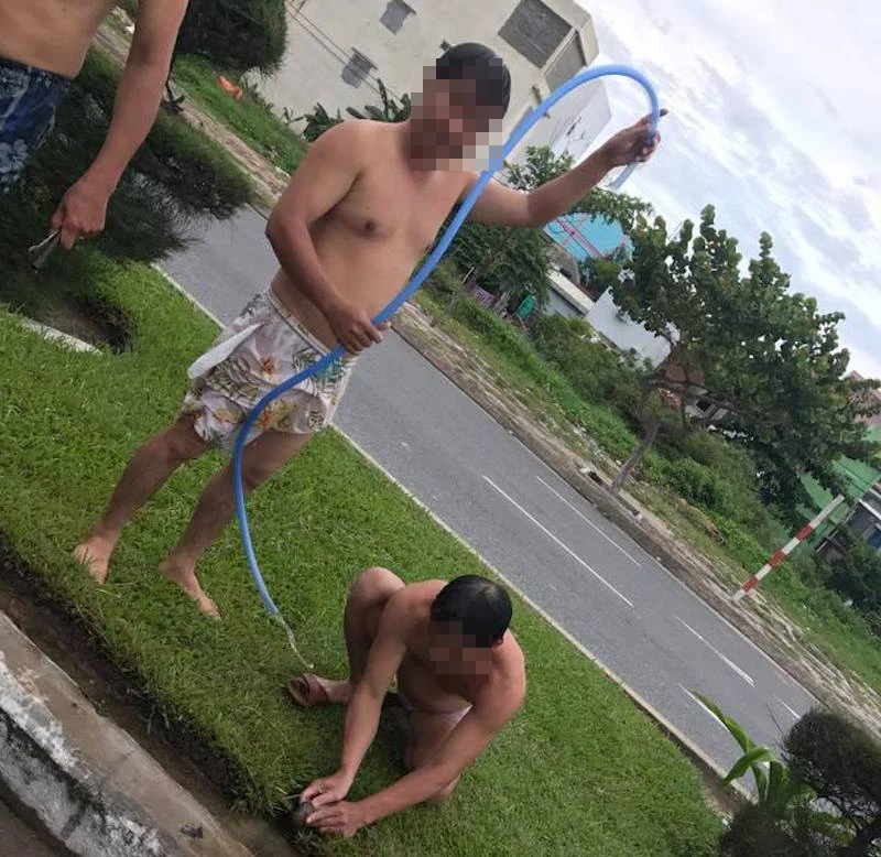 Những thanh niên trộm nước tưới cây xanh để tắm bị phát hiện. Ảnh: VQH