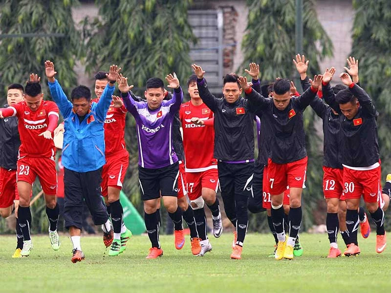 Thầy trò HLV Hữu Thắng chạy đua cho AFF Cup. Ảnh: XUÂN HUY