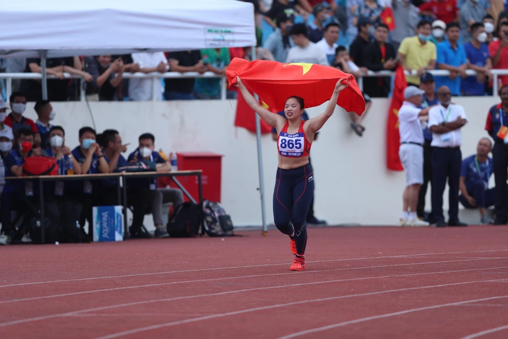 Điền kinh cũng xuất sắc mang về 3 HCV trong ngày và kết thúc hành trình SEA Games bảo vệ thành công ngôi nhất toàn đoàn với tổng cộng 19 HCV. Đầu tiên, nữ VĐV ném lao Lò Thị Hoàng xuất sắc phá kỷ lục SEA Games với thành tích 56,37 m mới (kỷ lục cũ 55,97 m) giành HCV.