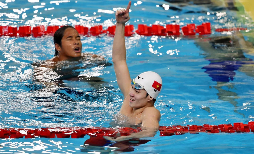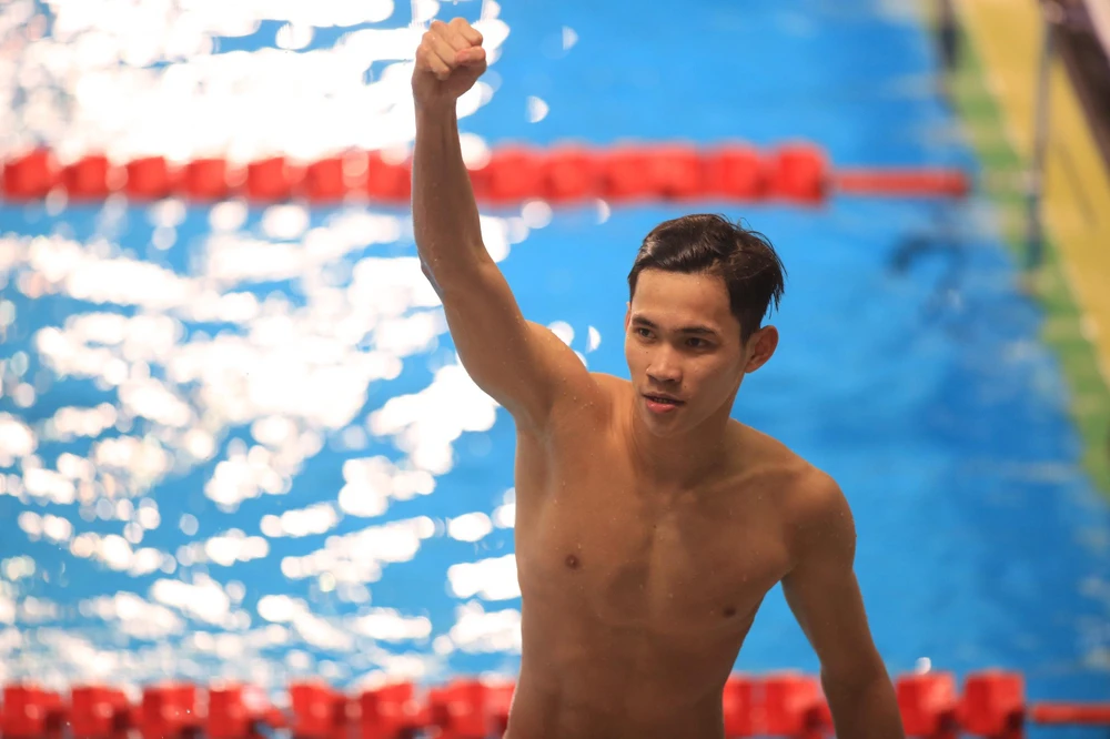Hưng Nguyên xuất sắc giành thêm 1 HCV môn bơi nữa. ẢNH: ANH PHƯƠNG |