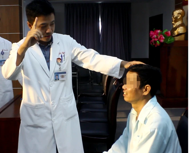 Trước đó, vào 10 ngày trước, anh LVN (ngụ huyện Nhà Bè, 42 tuổi) bị đau nhức đầu, mắt trái mờ nhanh, không thể đọc báo được nên đến khám tại BV Mắt và được chuyển đến BV Tai mũi họng TP. Bệnh nhân có tiền sử đã phẫu thuật mũi xoang do bệnh viêm xoang ba lần. Tại đây, các bác sĩ chẩn đoán bệnh nhân có u nhầy ở bên trong hốc mắt gây chèn ép dây thần kinh thị lực.
