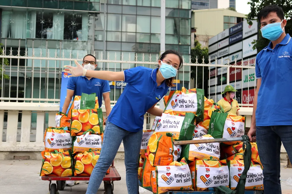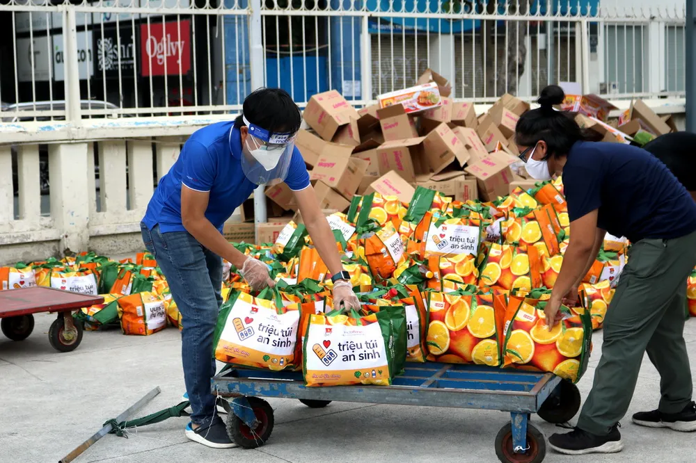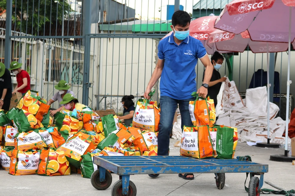 "Chúng tôi muốn người dân sớm được nhận đầy đủ thực phẩm thiết yếu nên việc sắp xếp các túi quà cẩn thận, chính xác là điều vô cùng quan trọng." - Thái Hà chia sẻ. Là một đoàn viên trẻ trung năng động, luôn hăng hái trong công tác kinh doanh tại thị trường TP.HCM, Thái Hà đang thể hiện rõ nét trách nhiệm với cộng đồng của mình và san sẻ phần nào sự gánh vác với lực lượng hỗ trợ tuyến đầu của TP.HCM.