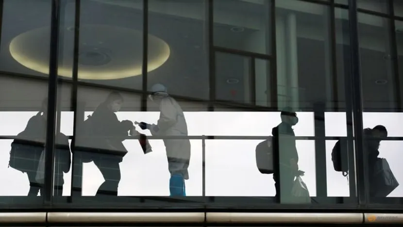 Nhân viên mặc đồ bảo hộ kiểm tra thân nhiệt các hành khách lên chuyến bay quốc tế tại sân bay quốc tế Narita ở Tokyo, Nhật, ngày 30-11. Ảnh: REUTERS