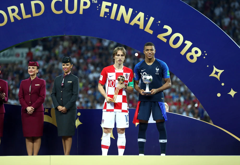 Modric (trái) là cầu thủ xuất sắc nhất World Cup 2018 và từng đoạt giải hay nhất của UEFA.
