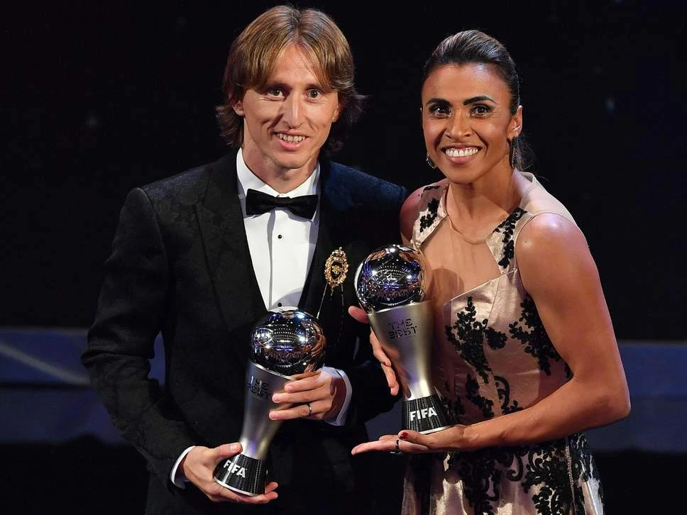 Cầu thủ nam Modric và cầu thủ nữ Marta xuất sắc nhất thế giới 2018.