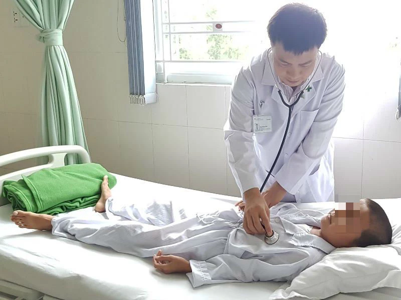 Bác sĩ kiểm tra sức khỏe cháu D. sau phẫu thuật. Ảnh: PHƯƠNG TRÀ