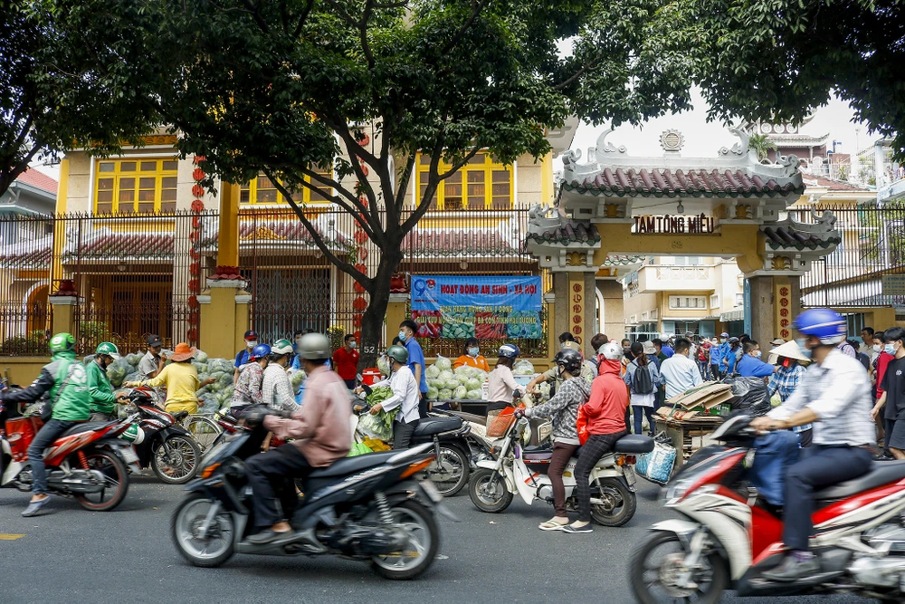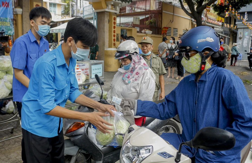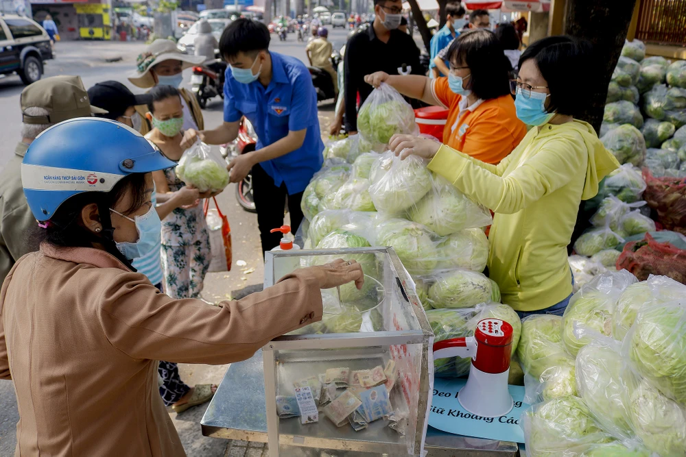 Buổi trưa của ngày cuối tháng 2, tiếng rao vang lên từ cổng Tam Tông Miếu (quận 3) với lời mời gọi rất đặc biệt: “Mời bà con ủng hộ nông sản Hải Dương! Bắp cải phát miễn phí nhưng kế bên có thùng ủng hộ tùy tâm, nếu bà con có lòng thì gửi vào đây, kinh phí này dùng để thực hiện các chuyến rau tiếp theo”.