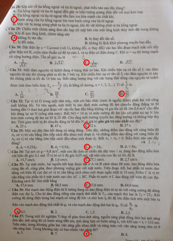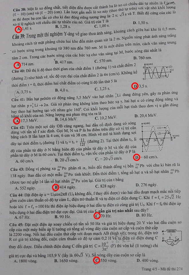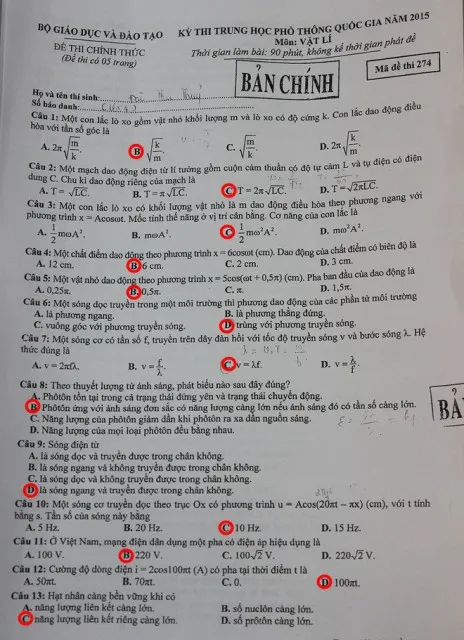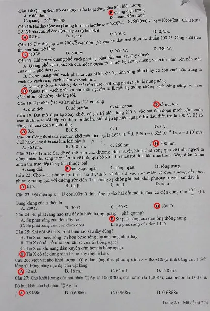 Gợi ý bài giải, mã đề thi 274 do các giáo viên thuộc trung tâm hocmai.vn Online thực hiện