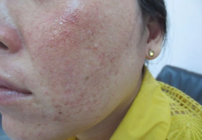 Hình ảnh tổn thương da mặt do nhiễm giun sán - Ảnh: Bác sĩ cung cấp.