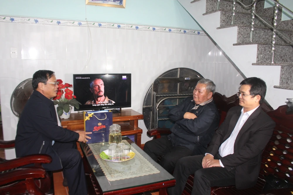 Đoàn UBND huyện Hoàng Sa đến thăm hỏi gia đình nhân chứng Trần Văn Sơn. Ảnh: T.AN