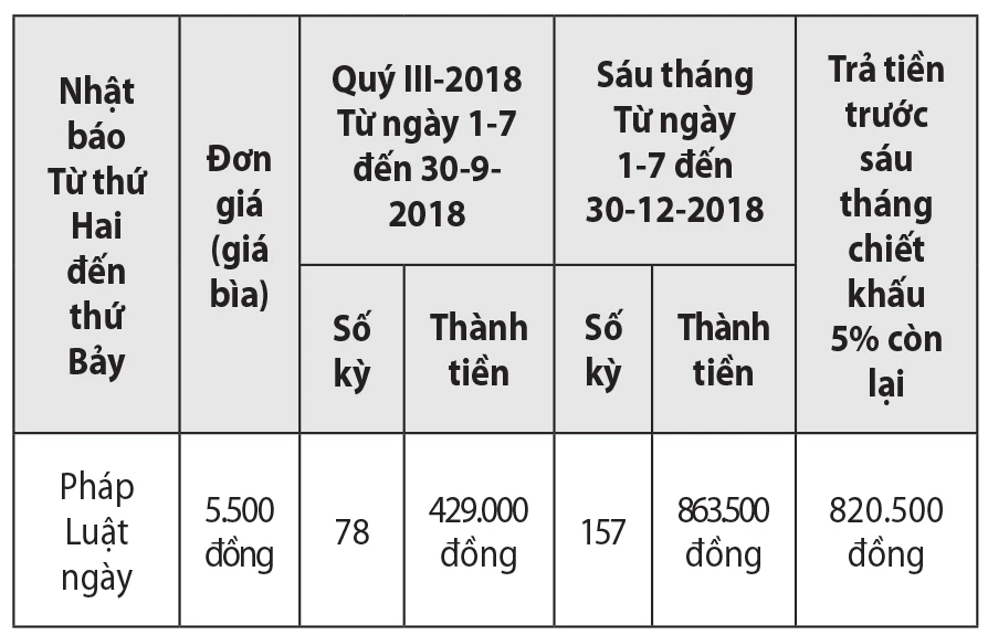 Chính sách ưu đãi đặc biệt: Quý độc giả mua báo trả tiền trước sáu tháng được chiết khấu 5% và tặng một tờ báo xuân Pháp Luật TP.HCM.