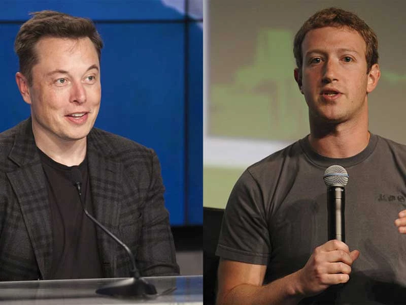 Trong khi tỉ phú Elon Musk (trái) bi quan về việc AI sẽ đe dọa nhân loại, nhà sáng lập Facebook Mark Zuckerberg (phải) tin tưởng AI sẽ nâng tầm con người. Ảnh: BIGTHINK