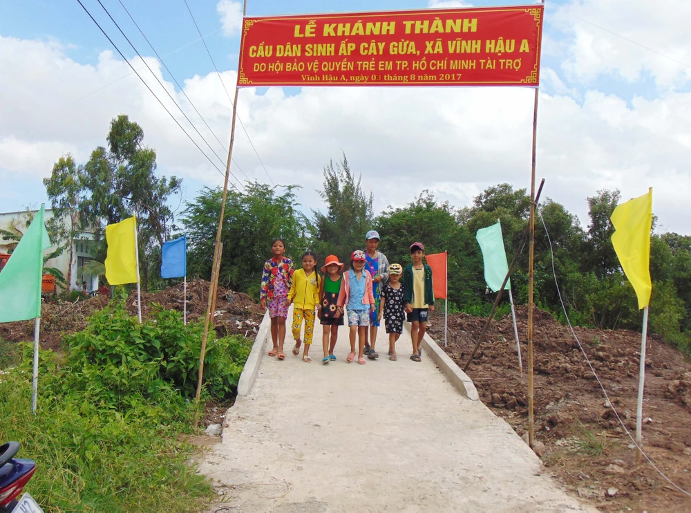 “Trên địa bàn xã Vĩnh Hậu A còn nhiều cây cầu tạm bợ, gây khó khăn cho việc đi lại của trẻ em và bà con. Chúng tôi tiếp tục cố gắng vận động các nhà từ thiện đóng góp và xây cầu mới để bà con đi lại được dễ dàng” - bà Tô Thị Kim Hoa, Phó Chủ tịch Hội Bảo vệ quyền trẻ em TP.HCM, chia sẻ.