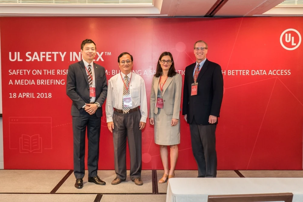 Ông Anthony Tan (ngoài cùng, bên trái) tham gia buổi họp báo chia sẻ về chỉ số an toàn UL.
