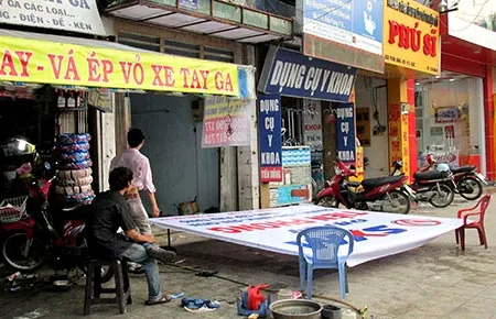 | Điều 33 Luật Quảng cáo quy định kích thước các bảng hiệu kinh doanh như sau: Đối với bảng hiệu ngang thì chiều cao tối đa là 2 m, chiều dài không vượt quá chiều ngang mặt tiền nhà; còn với bảng hiệu dọc thì chiều ngang tối đa 1 m, chiều cao tối đa 4 m nhưng không vượt quá chiều cao của tầng nhà nơi đặt bảng hiệu. Bảng hiệu không được che chắn không gian thoát hiểm, cứu hỏa; không được lấn ra vỉa hè, lòng đường, ảnh hưởng đến giao thông công cộng. Cá nhân vi phạm các nội dung trên sẽ bị phạt tối đa 12,5 triệu đồng; còn đối với công ty, doanh nghiệp thì mức phạt tối đa là 25 triệu đồng. Do thiếu nhân lực, thời gian qua việc kiểm tra, nhắc nhở các cơ sở lắp biển hiệu sai quy định chưa được phường thực hiện thường xuyên. Sắp tới công tác này sẽ được chúng tôi chú trọng hơn. Phó chủ tịch UBND một phường ở quận 10 |