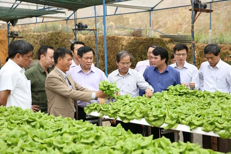Phó Thủ tướng Vương Đình Huệ thăm mô hình trồng rau, củ của HTX Tân Tiến ở Lâm Đồng tháng 6-2017. Ảnh: VGP