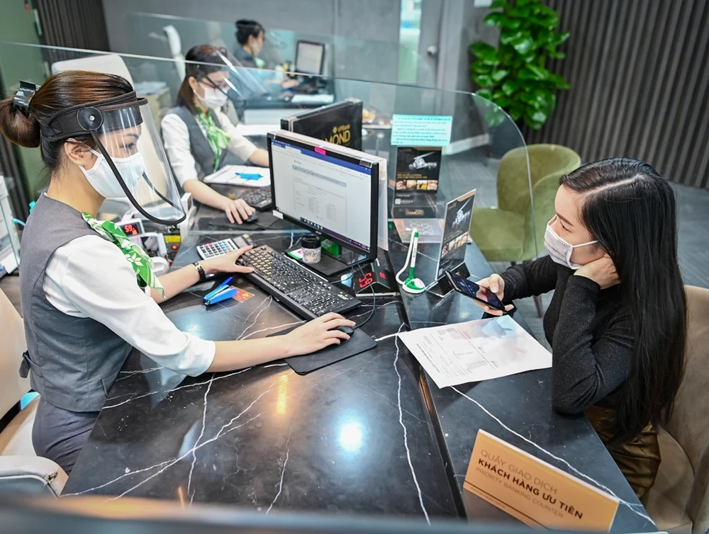 Nhân viên VPBank nỗ lực làm việc nhưng vẫn luôn đảm bảo tiêu chí an toàn phòng chống dịch COVID-19.
