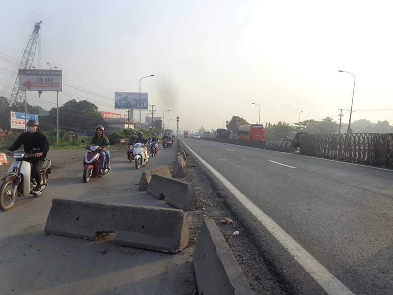 Có đoạn dải phân cách bị xoay gần như chắn ngang ra đường nhưng không kịp thời được xử lý gây cản trở giao thông và rất nguy hiểm cho người tham gia lưu thông.