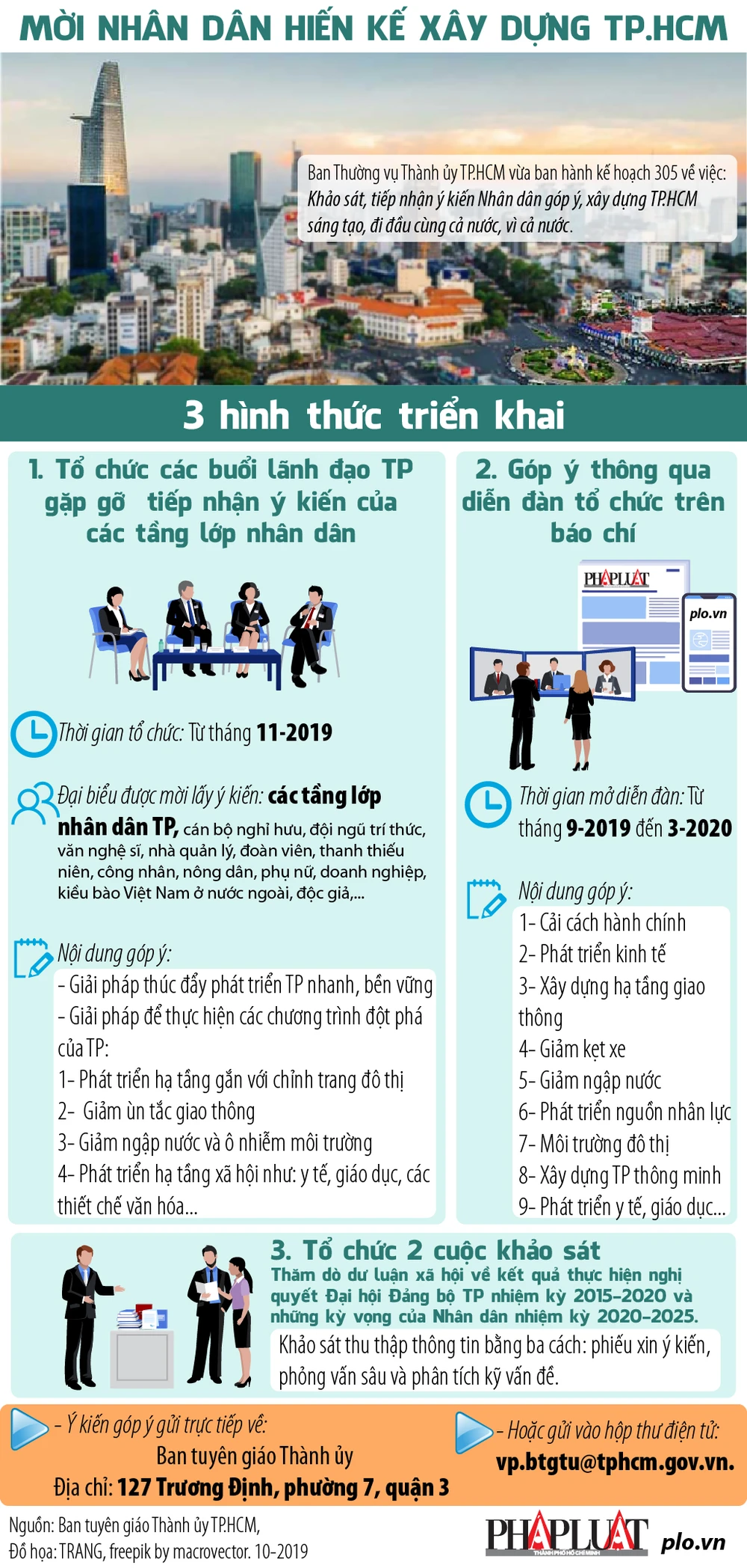 (PLO)- Ban Thường vụ Thành ủy TP.HCM vừa ban hành kế hoạch 305 về việc: "Khảo sát, tiếp nhận ý kiến nhân dân góp ý, xây dựng TP.HCM sáng tạo, đi đầu cùng cả nước, vì cả nước".