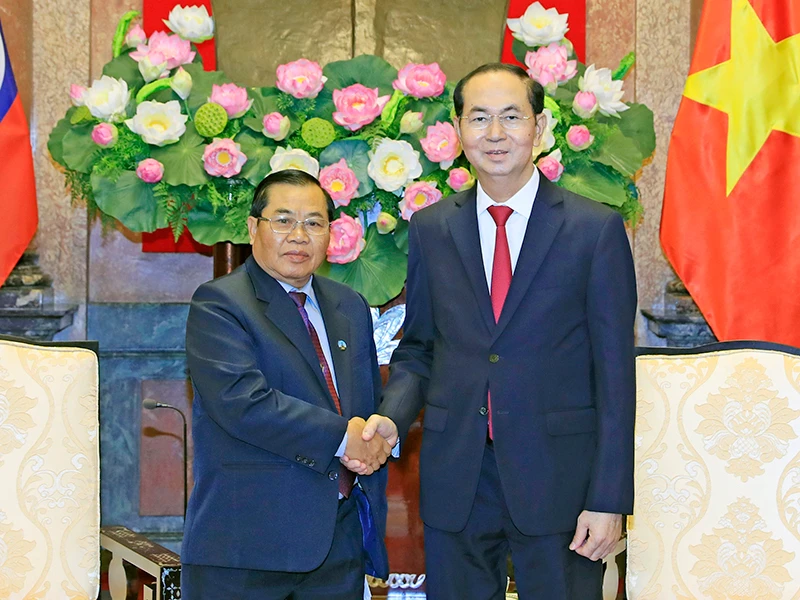 Chủ tịch nước Trần Đại Quang tiếp Phó Chủ tịch Quốc hội nước Cộng hòa Dân chủ Nhân dân Lào Sengnouane Sayalat đang có chuyến thăm chính thức Việt Nam. Ảnh: TTXVN