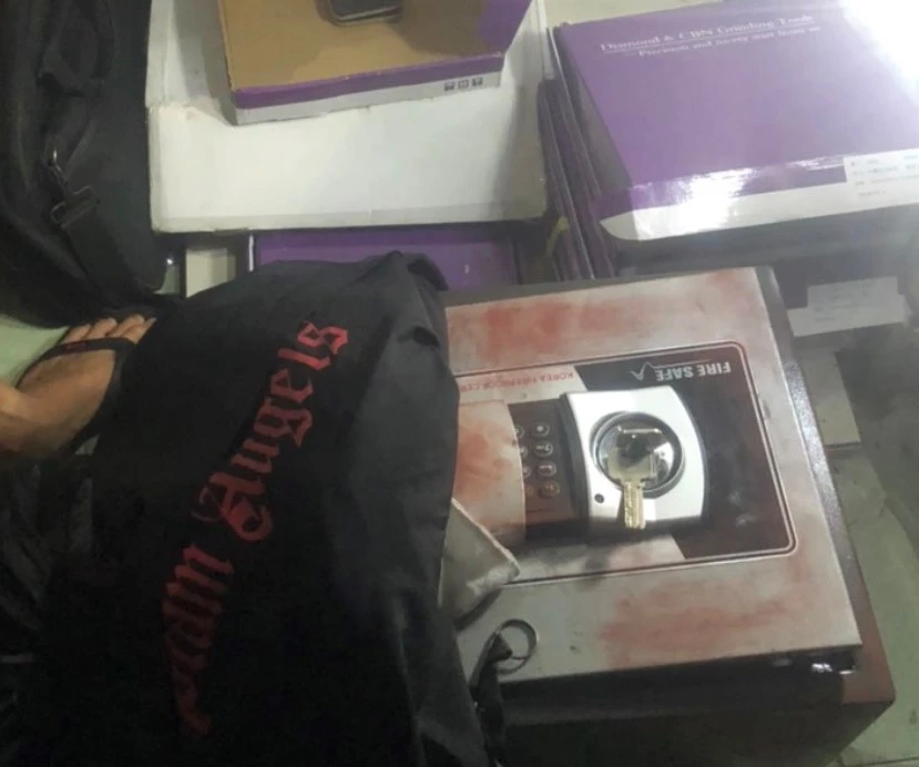 Khi kiểm tra, chiếc két sắt đã bị Cương phá ra để lấy tài sản. Bên trong két sắt có hai điện thoại di động và khoảng 70 triệu đồng tiền mặt .
