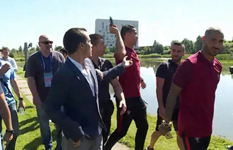 Cao điểm là tại vòng bảng khi CR7 ném micro của PV kênh truyền hình CMTV xuống hồ nước vì bất bình. Chuyện xảy ra khi Ronaldo đang cùng đồng đội đi dạo. Bất chợt Ronaldo thấy chiếc micro đỏ mang logo của CMTV, anh liền giật lấy và ném ngay xuống hồ.