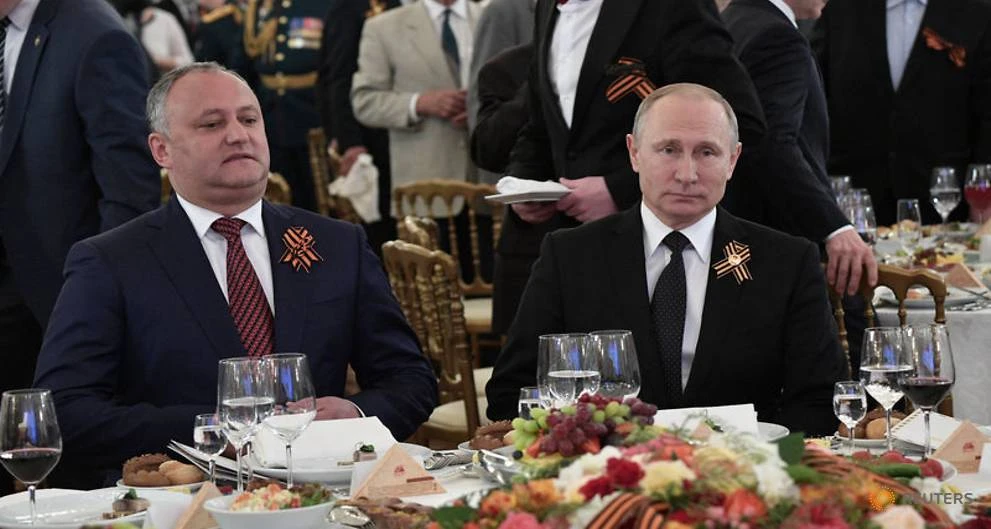 Tổng thống Putin và tổng thống Igor Dodon tham dự ngày lễ chiến thắng tại điện Kremlin ở Moscow. Ảnh: REUTERS