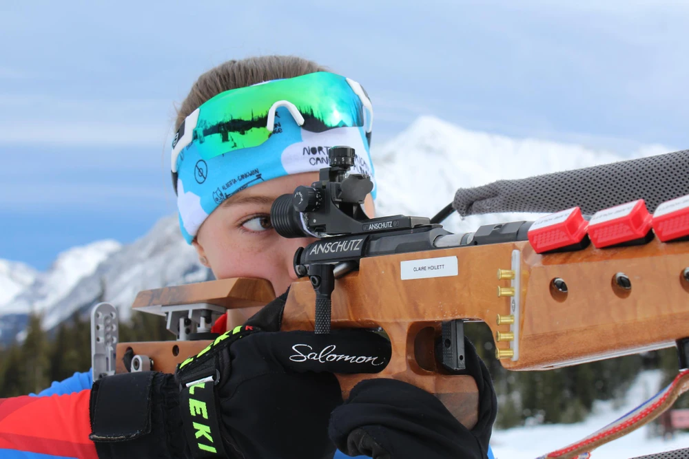 Súng dự thi tất nhiên và súng chuẩn, chuyên dụng, họp tiếp đạn 22 viên đạn, trong cuộc đua trượt tuyết suốt vòng đua có tối đa năm mục tiêu VĐV nhắm bắn thi tài, mục tiêu cách 50 m.
