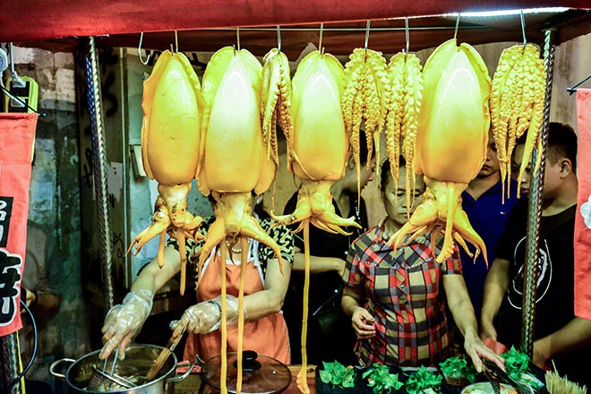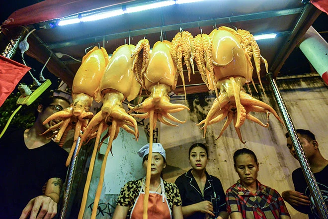 Những con mực to căng bóng, kích thước khổng lồ khiến ai chứng kiến cũng phải nuốt nước bọt ừng ực.