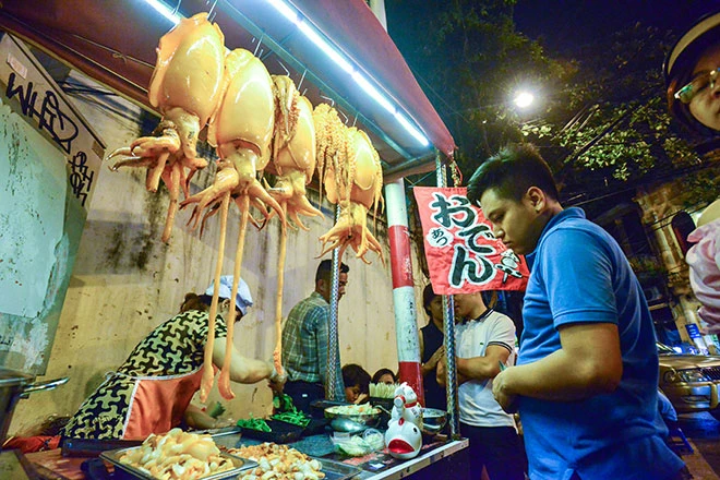Mặc dù mới xuất hiện vài tuần gần đây nhưng món mực khổng lồ đã nhanh chóng gây ra cơn sốt trong giới trẻ và được nhiều bạn trẻ thủ đô đổ xô tìm mua.