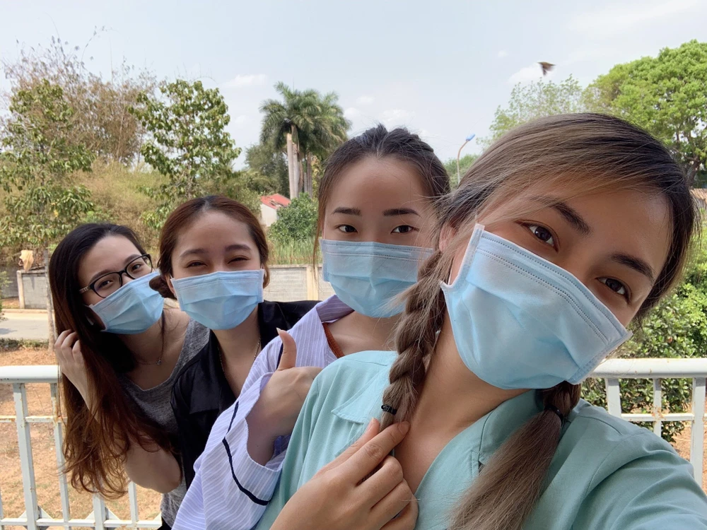 "Các nhân viên ở đây đeo khẩu trang suốt, tụi em chỉ tưởng tượng ra khuôn mặt mỗi người chứ chỉ thấy mỗi đôi mắt. Sáng nay khi rời khỏi khu cách ly, tụi em cũng chỉ thấy được ánh mắt biết cười và hình dung nụ cười các anh chị qua lớp khẩu trang.