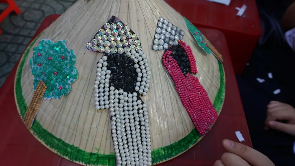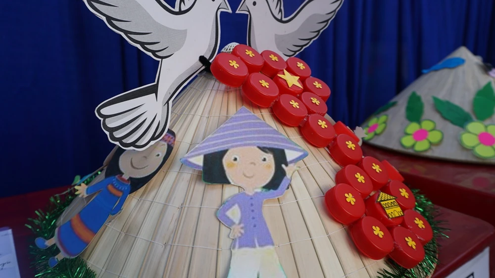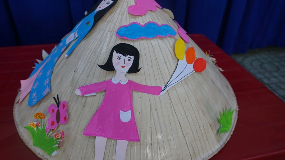 Những sản phẩm nón lá do học sinh tự trang trí trông rất dễ thương