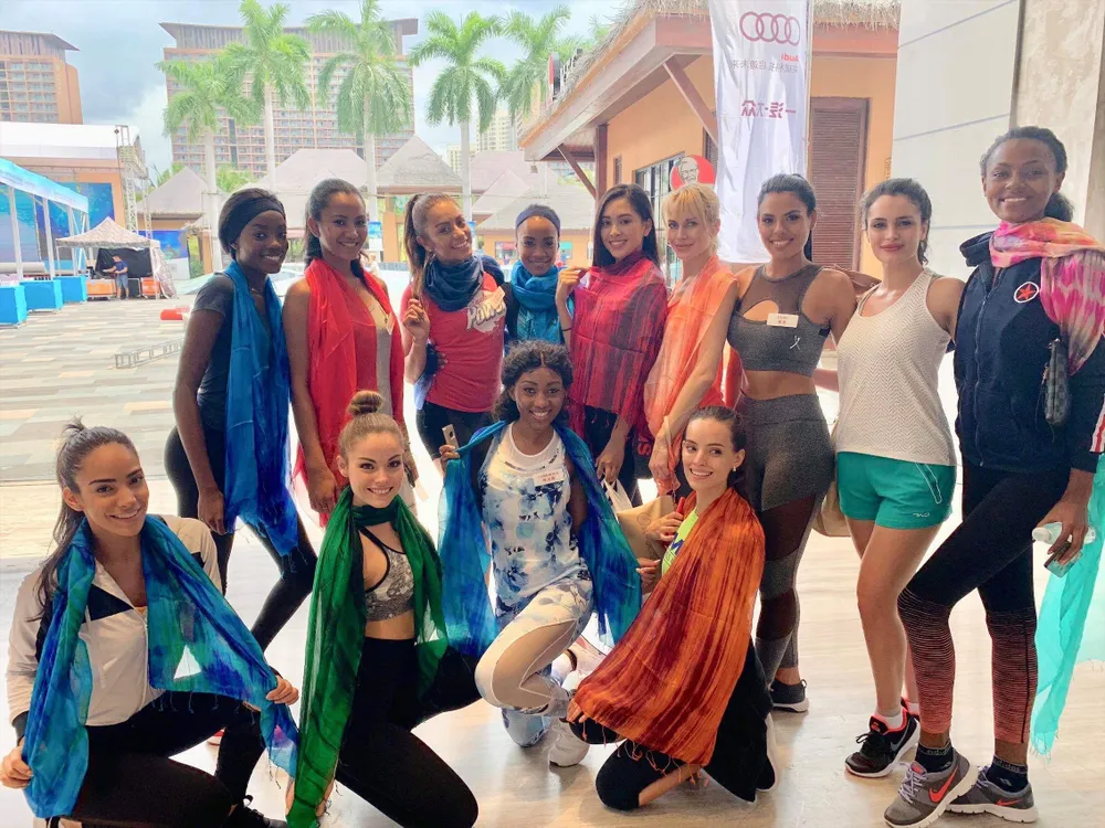 Bạn bè quốc tế đã khoác những chiếc khăn lụa được dệt từ chính quê hương Hội An mà Tiểu Vy mang tặng.