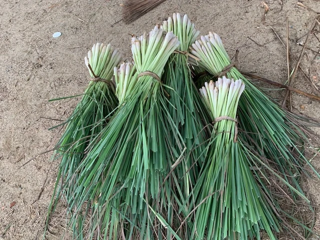 Để chuẩn bị cho món ruốc sả chị tôi hái sả từ vườn. Mùa dịch cây sả lại được dùng nhiều nhất. Sả nấu nước uống, chanh sả mật ong cho ra món nước chống virus đang được quảng cáo ngập tràn trên mạng. Và may thay vườn sả nhà tôi được mùa để gửi chút tấm lòng đến những chiến sĩ ngày đêm chống dịch..