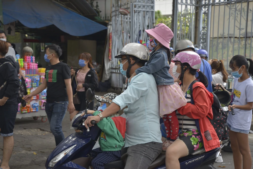 Các em nhỏ được người lớn trang bị khẩu trang đầy đủ. Ảnh: HK.